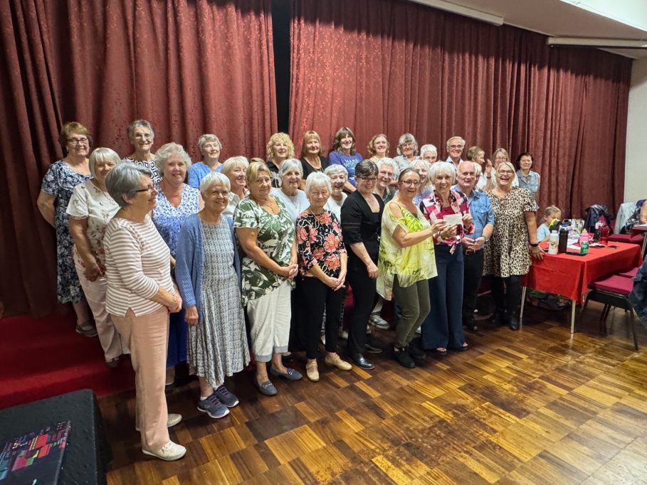 Photograph – Members of the Ruth Barrow Line Dancing Group present the cheque to Jan Turner on behalf of the Friends of Airedale